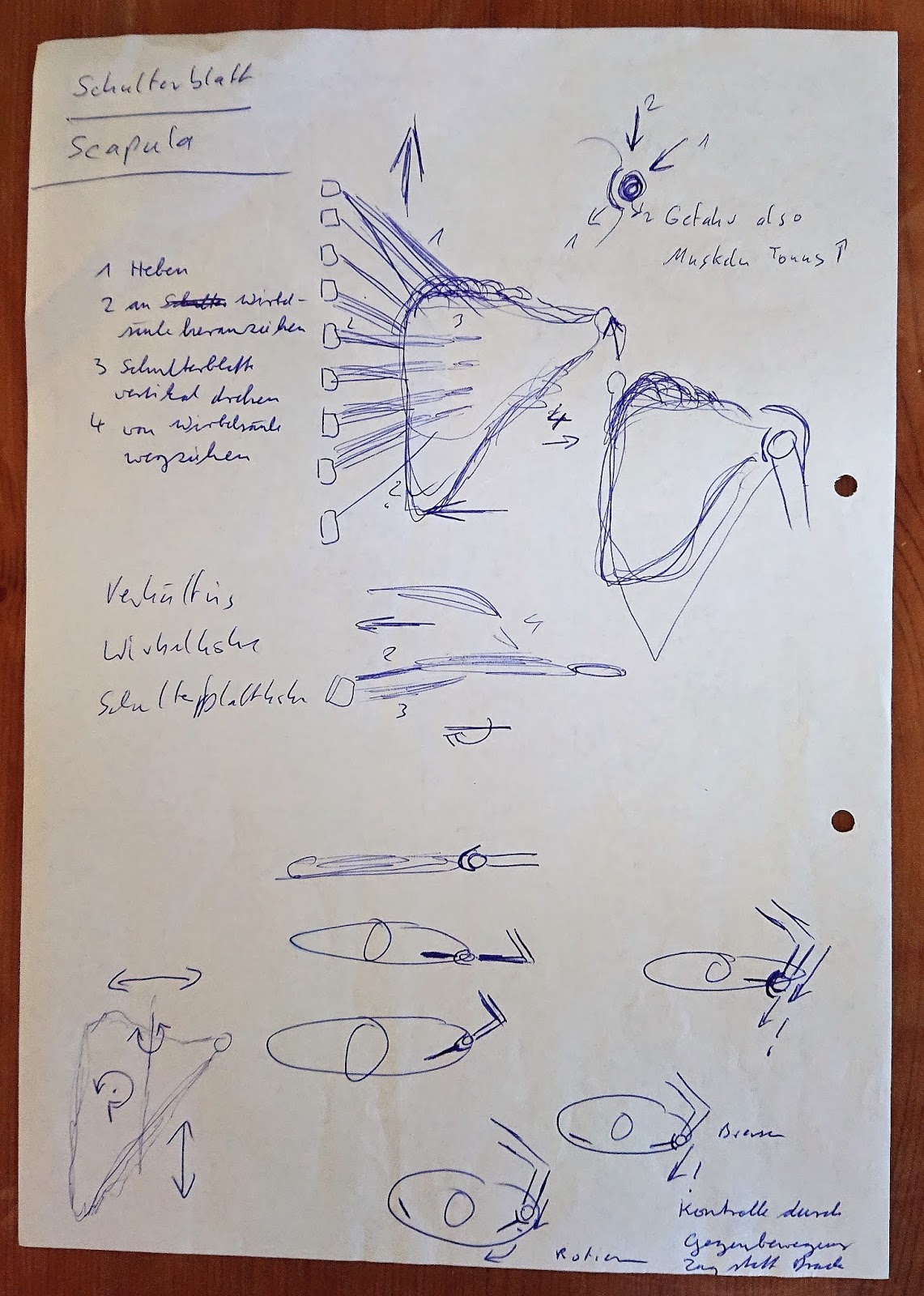 bewege. Was macht nun das Schulterblatt in der Zeit? … Es ruht und verwächst